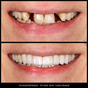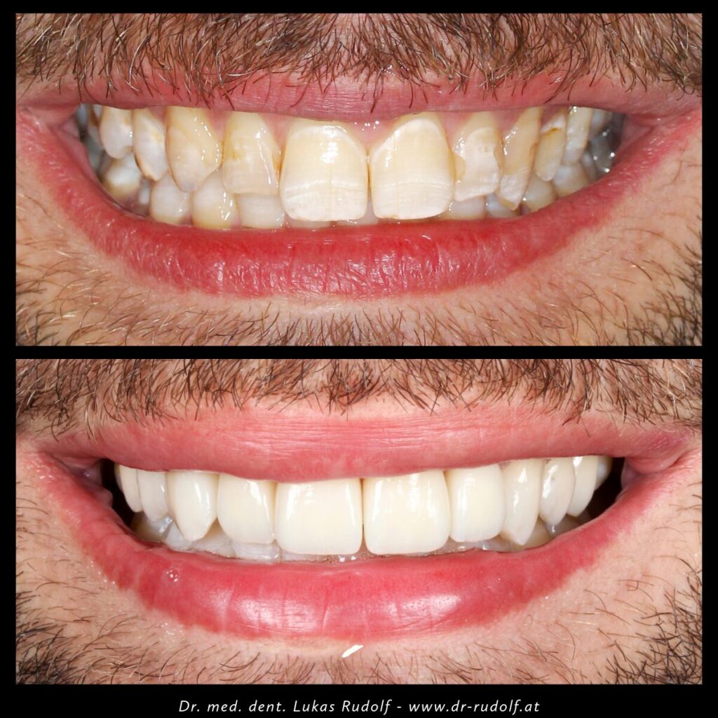 We are committed to biomimetic dentistry, which aims to restore the masticatory system as closely as possible to the natural model. This should not be achieved through short-term “cosmetic” interventions. Our goal is to enable a harmonious and beautiful smile in the long term, based on functional considerations. Examples include:
